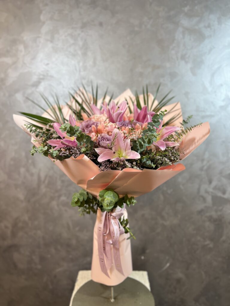 Pembe Lilyum & Gül Buketi | Premium Romantik Çiçek Tasarımı