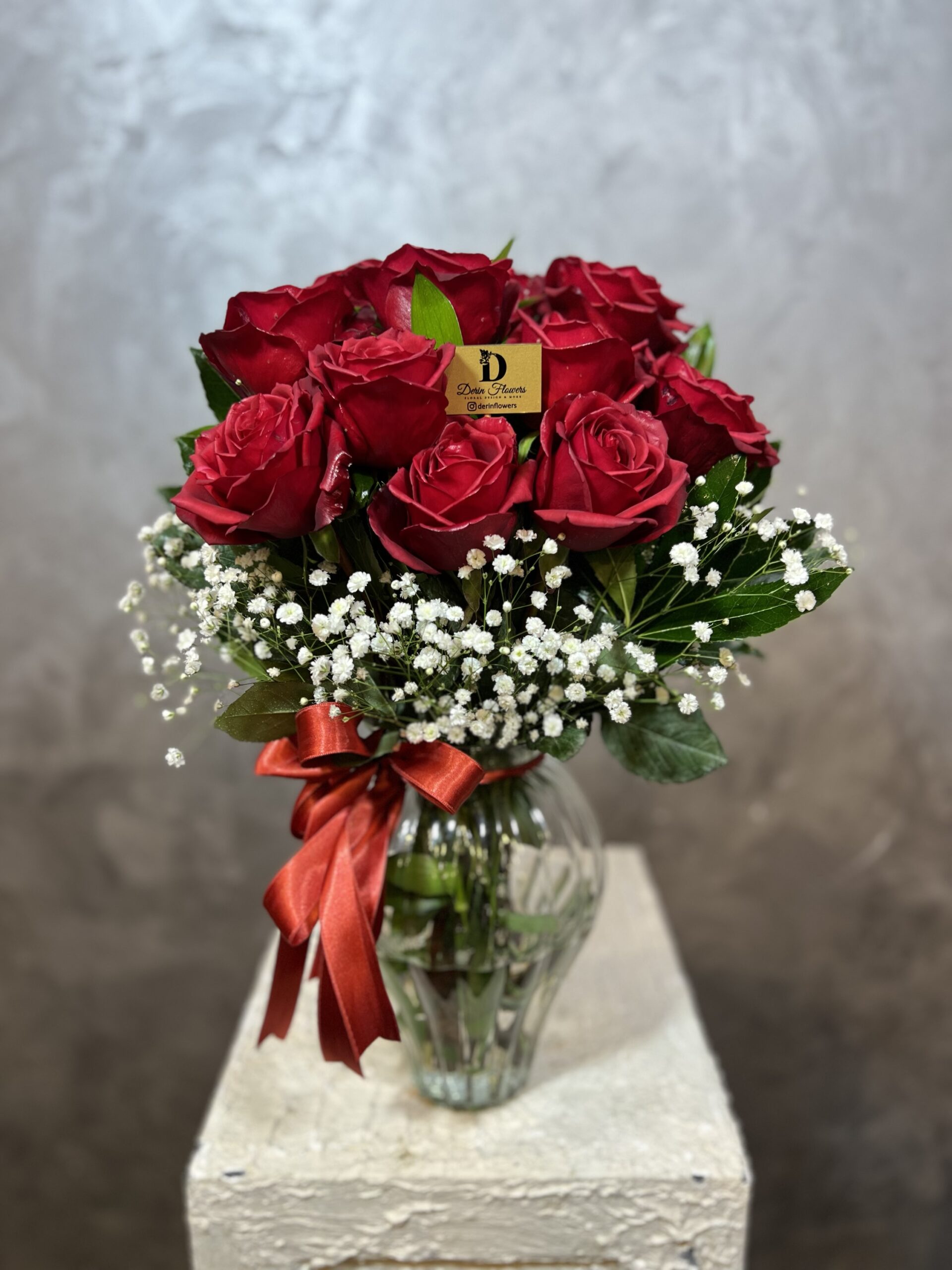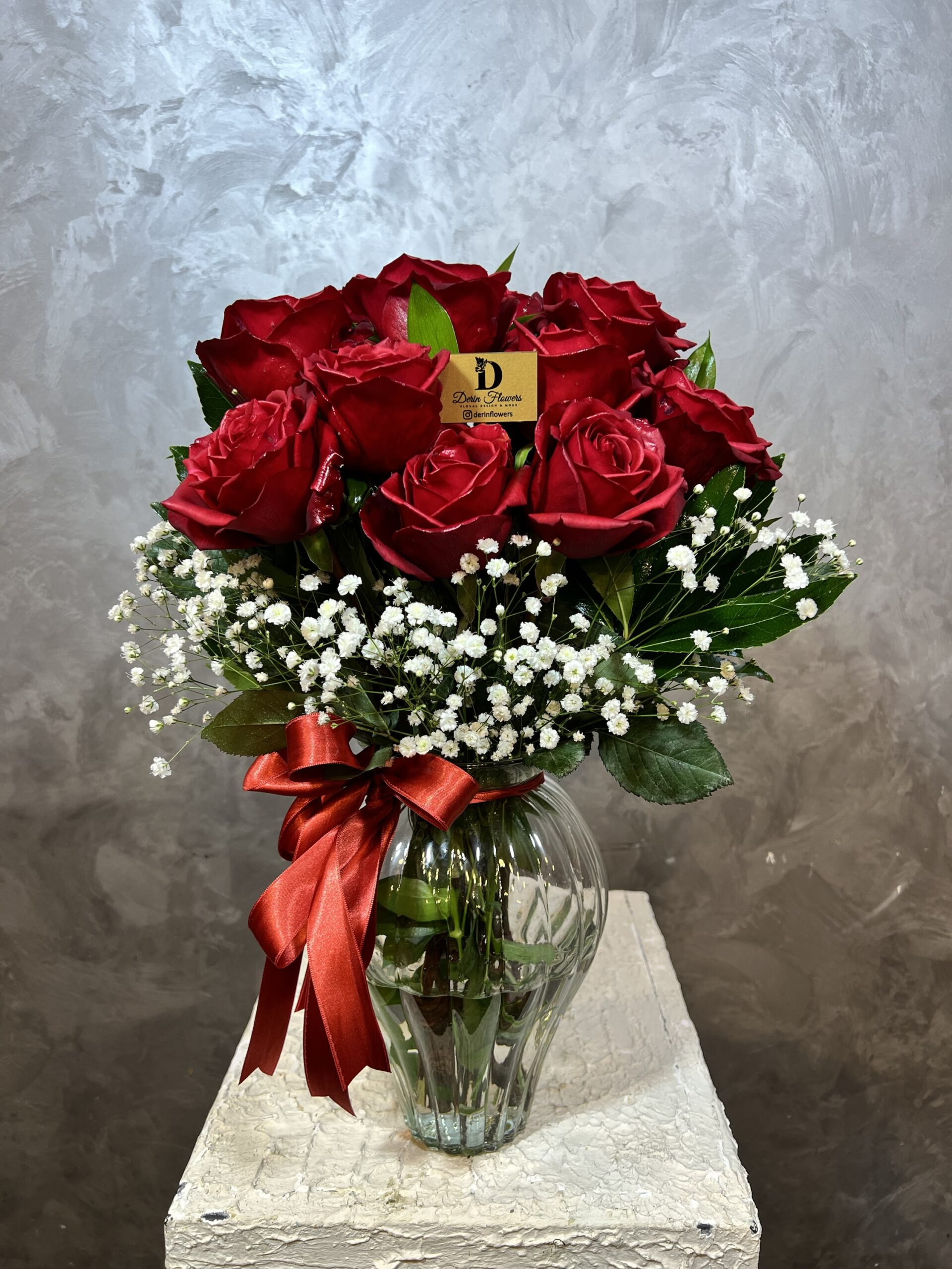11’li Kırmızı Gül Aranjmanı | Cam Vazoda Şık Tasarım