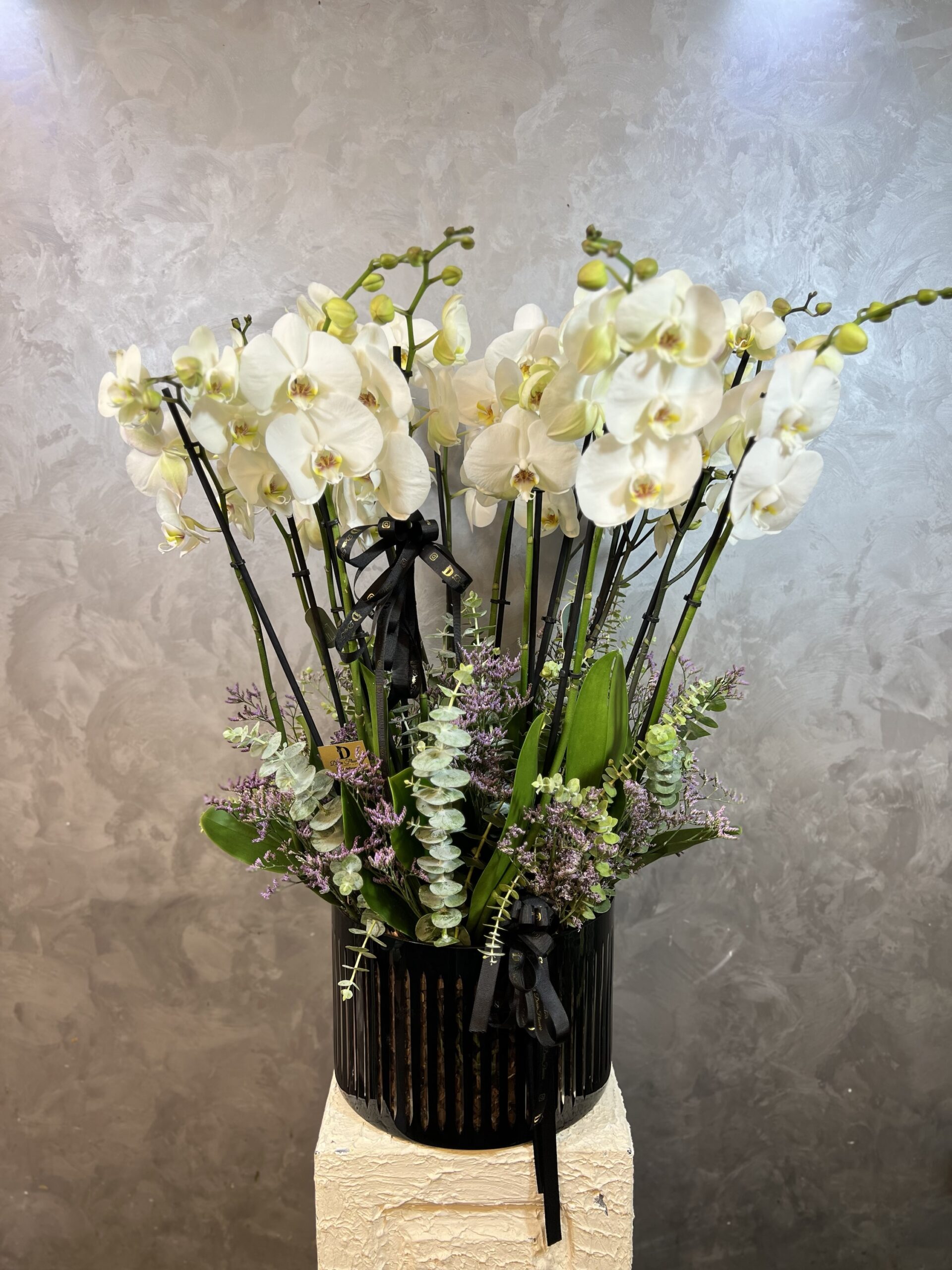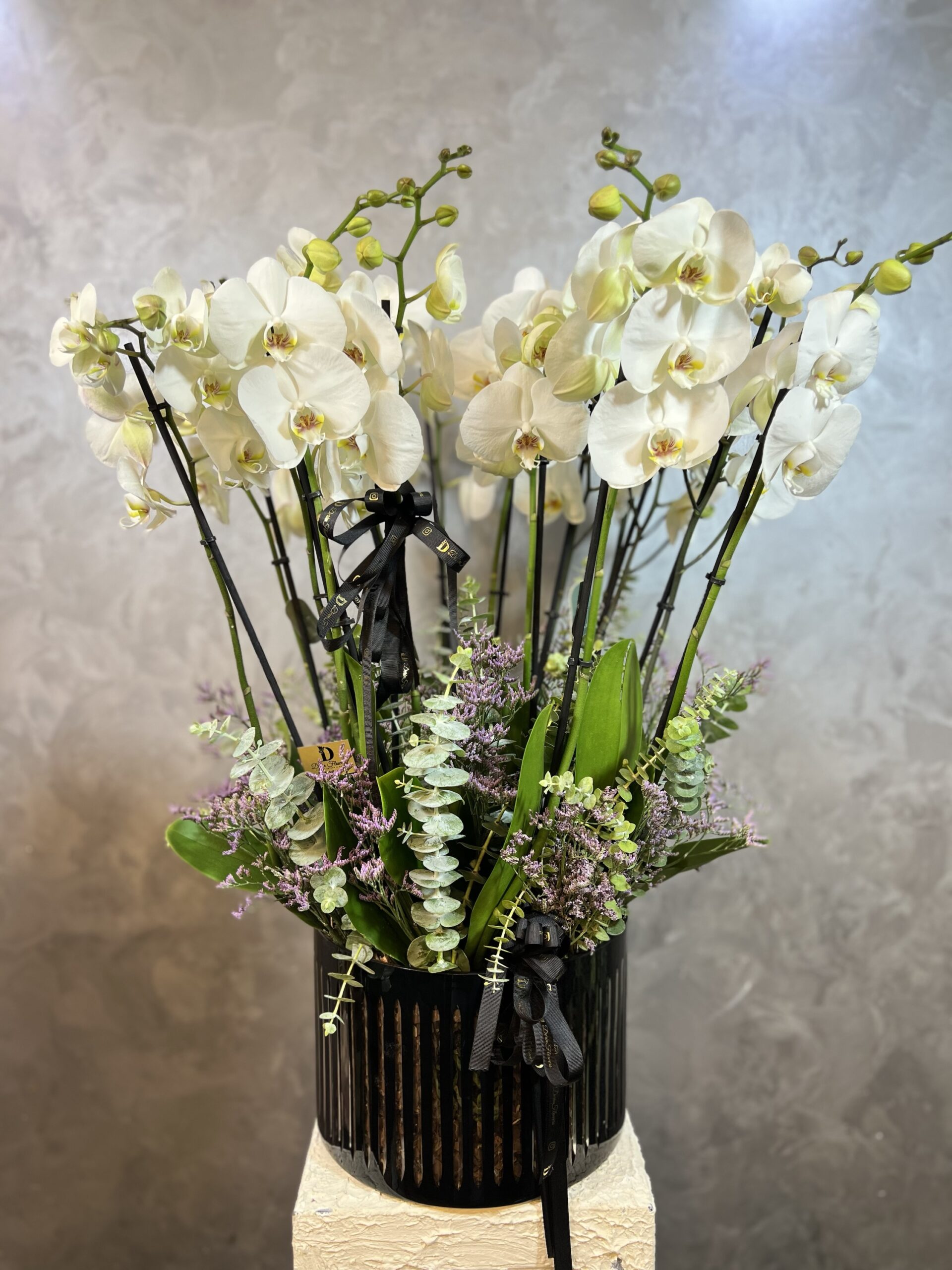 Özel cam kase içerisine özenle hazırlanan 16 dal jumbo boy orkide eşsiz tasarımıyla sizlerle!