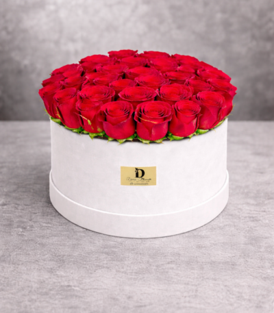 Beyaz Silindir Kutuda Kırmızı Gül – Premium Lüks Gül Aranjmanı