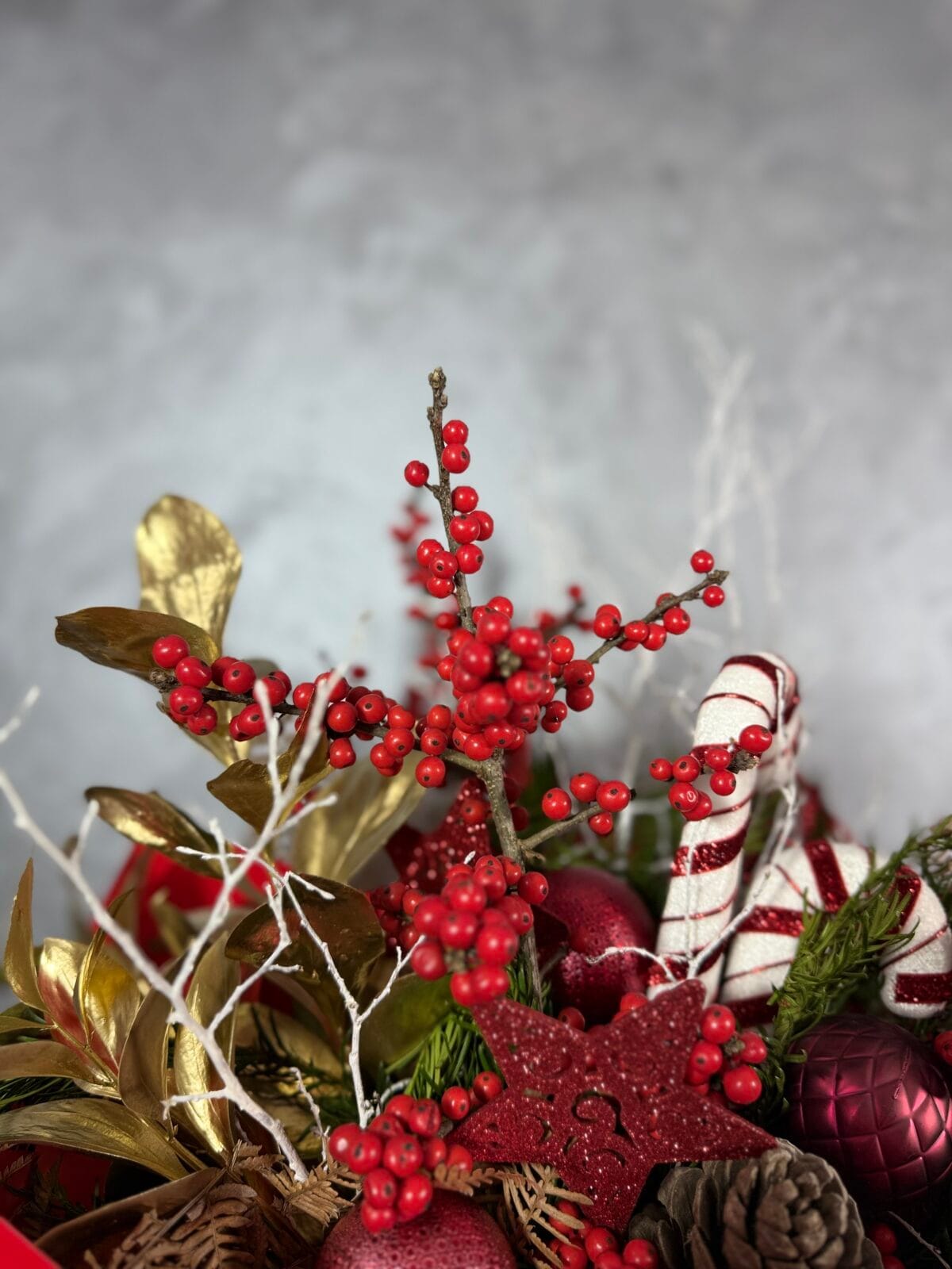 İlex Buketi, Kırmızı ilex dallarının büyüleyici görünümüyle, özel anlara zarafet katan bir buket.