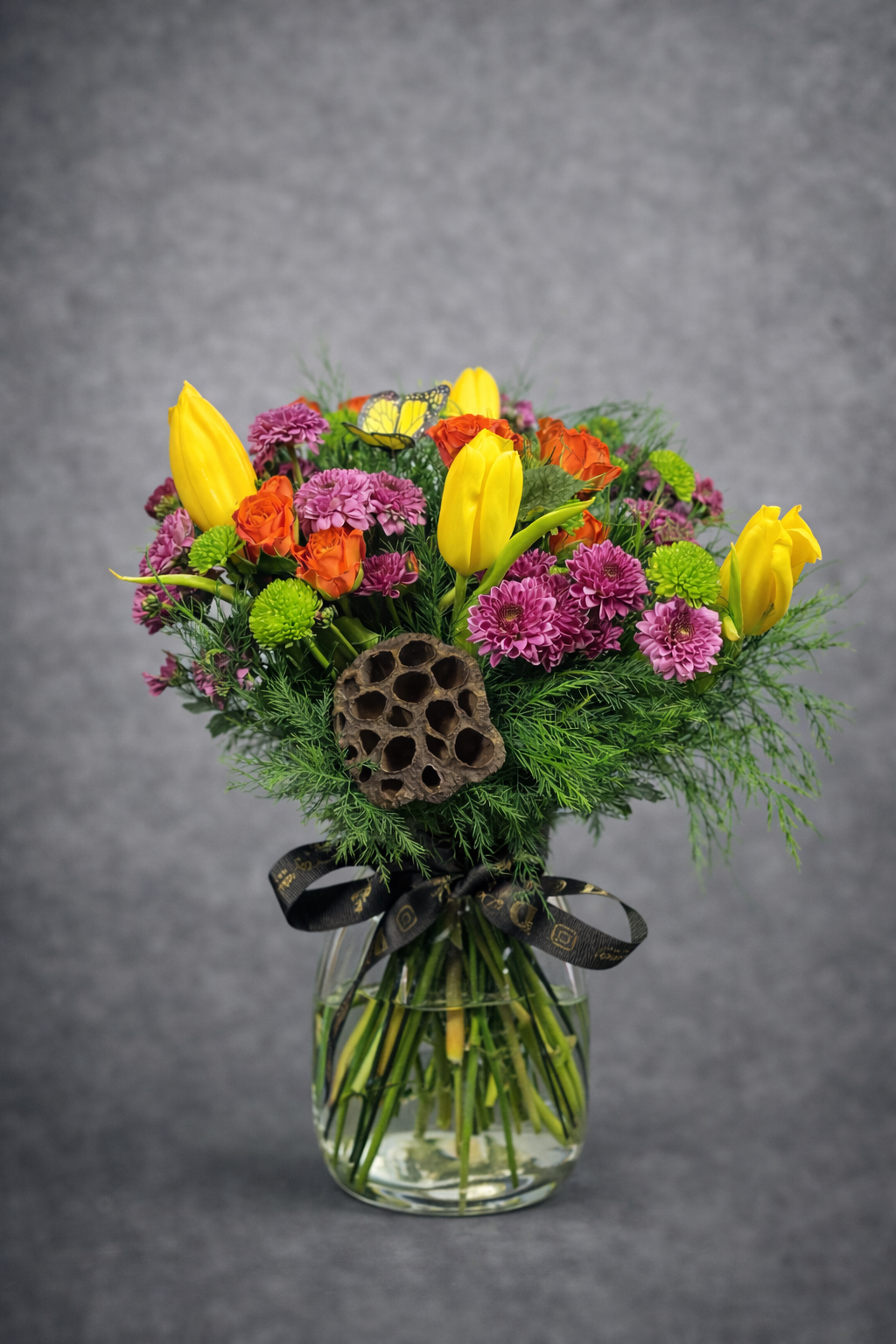 Vazoda sarı lalelerin neşesi, turuncu güllerin sıcaklığı ve mevsim çiçeklerinin zarafeti bir araya gelerek büyüleyici bir aranjman oluşturuyor. Doğanın canlı renkleriyle hayat bulan bu özel tasarım, hem dekoratif bir dokunuş hem de anlamlı bir hediye alternatifi olarak öne çıkıyor. Derin Flowers’ın özgün çiçek yorumuyla mekanlarınıza renk katın!