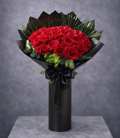 51 Kırmızı Gül Buketi – Premium Siyah Ambalajlı Gül Aranjmanı
