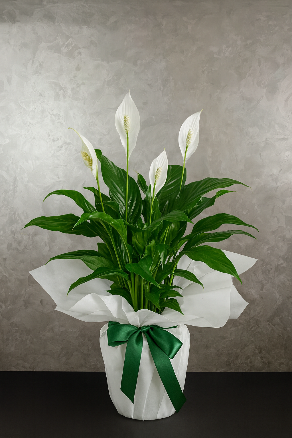 Spathiphyllum, halk arasında Barış Çiçeği olarak bilinen; estetik görünümü, dayanıklı yapısı ve ortama ferahlık katan etkisiyle en çok tercih edilen iç mekân bitkilerinden biridir. Parlak ve geniş yaprakları arasında açan beyaz çiçekleri, sadeliği ve huzuru simgeler.